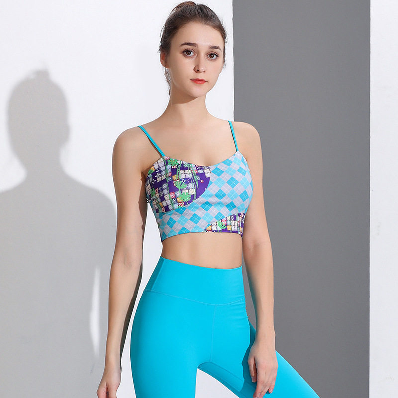 时尚印花瑜伽背心带胸垫高强度防震运动内衣女防下垂跑步健身上衣