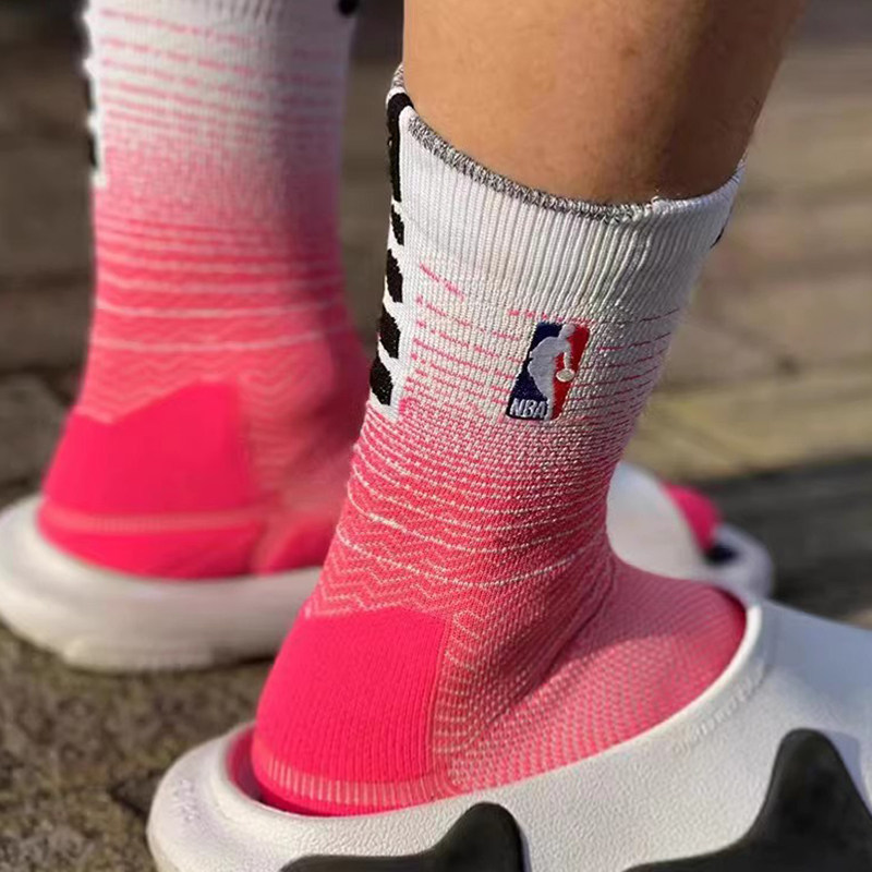 淘宝布克篮球装备,透气男士中筒跑步夏季渐变篮球袜