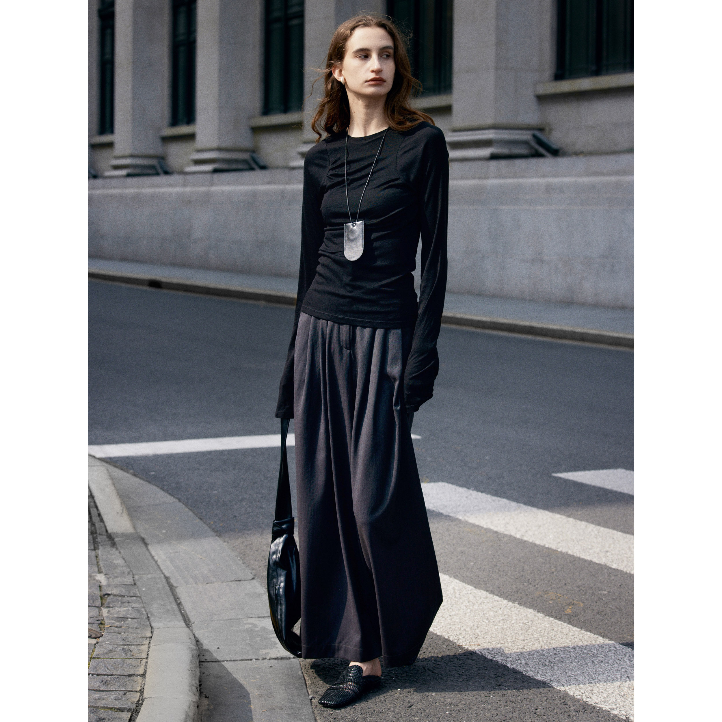 淘宝Satins,轻薄精纺羊毛阔腿西装裤