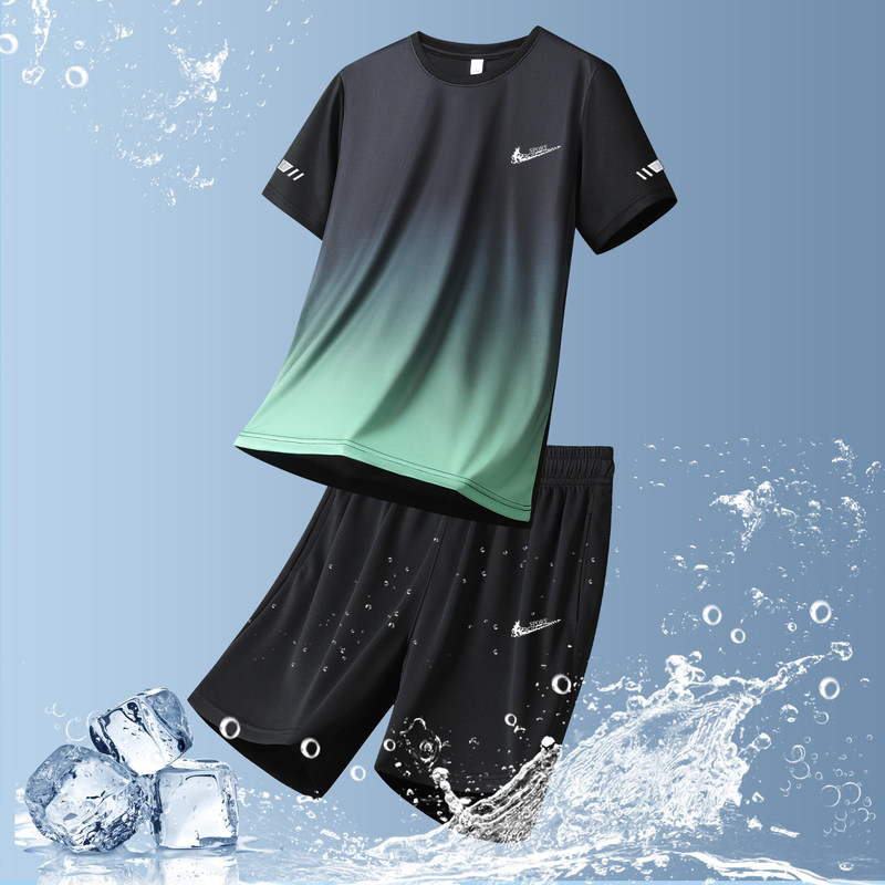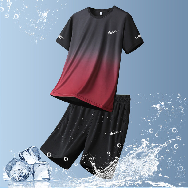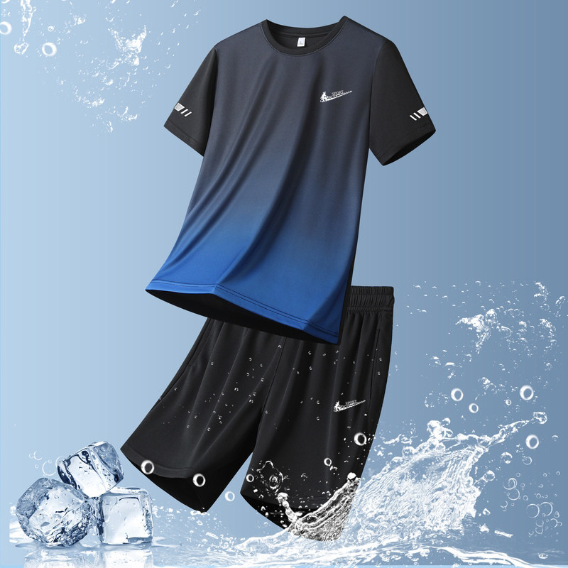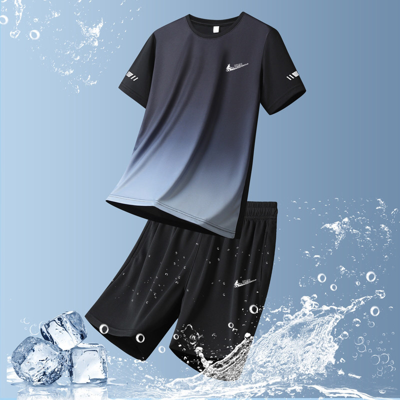 耐克顿运动套装男夏季短袖T恤男速干衣服跑步宽松休闲运动服大码