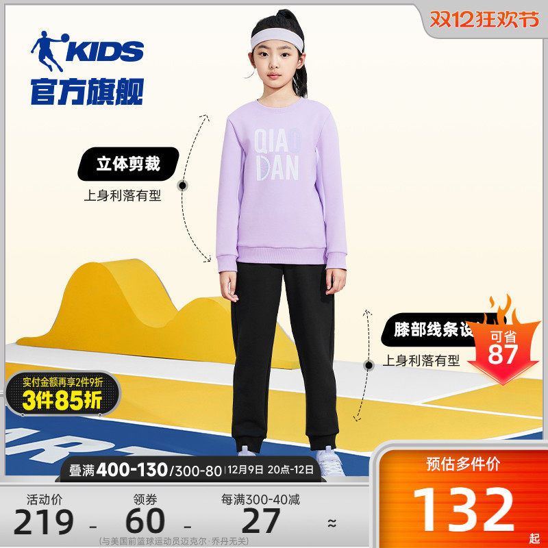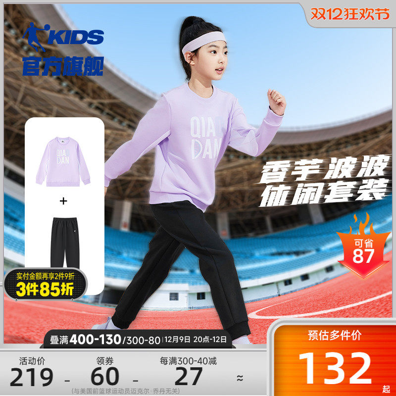 乔丹童装女童套装休闲两件套2024秋季新款儿童运动服女童套头卫衣