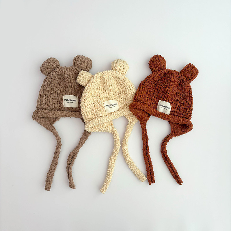 儿童帽子ins韩系女童毛线帽2024秋冬可爱男女童针织护耳套头帽潮