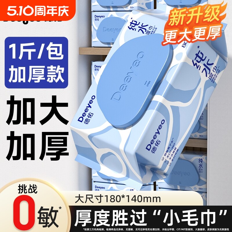 天猫天天特卖工厂店,德佑纯水湿巾湿纸巾婴儿手口专用家用大包装80抽大尺寸母婴通用