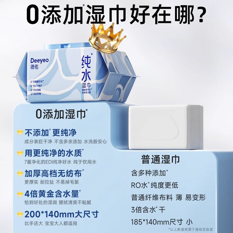 德佑纯水湿巾湿纸巾婴儿手口专用家用大包装…