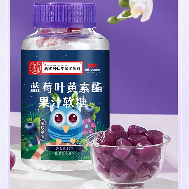 蓝莓叶黄素酯果汁软糖中老年儿童蓝莓味男女通用正品【专属6】