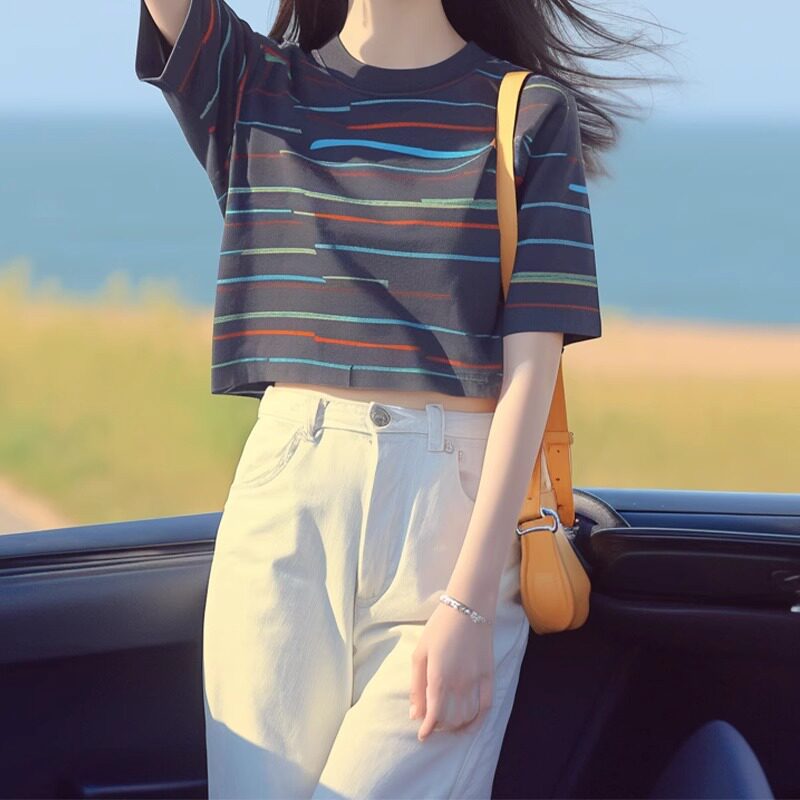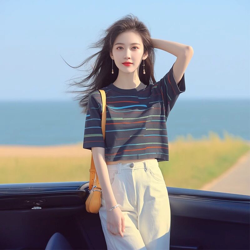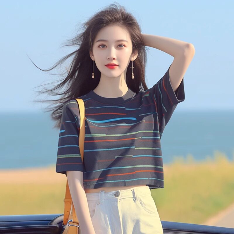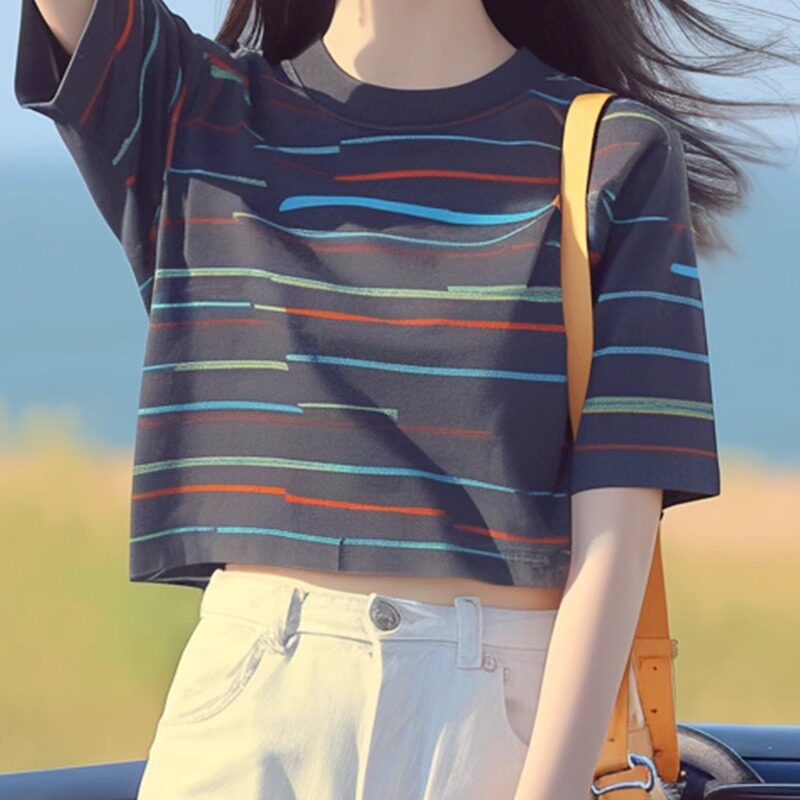 淘宝沫沫网红女装店,宽松百搭显瘦黑色条纹T恤女款