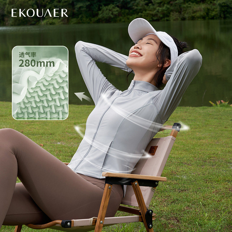 天猫EKOUAER一刻儿旗舰店,一刻儿EKOUAER立领修身显瘦冰皮防晒衣户外风感波粒夏凉感运动服