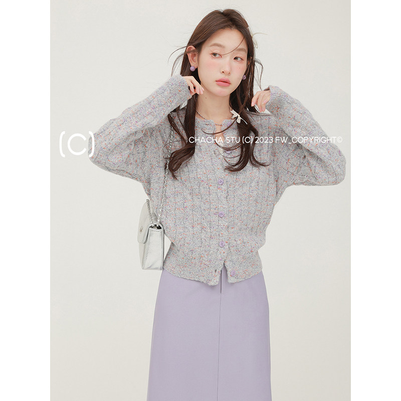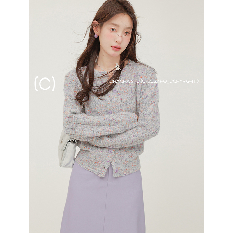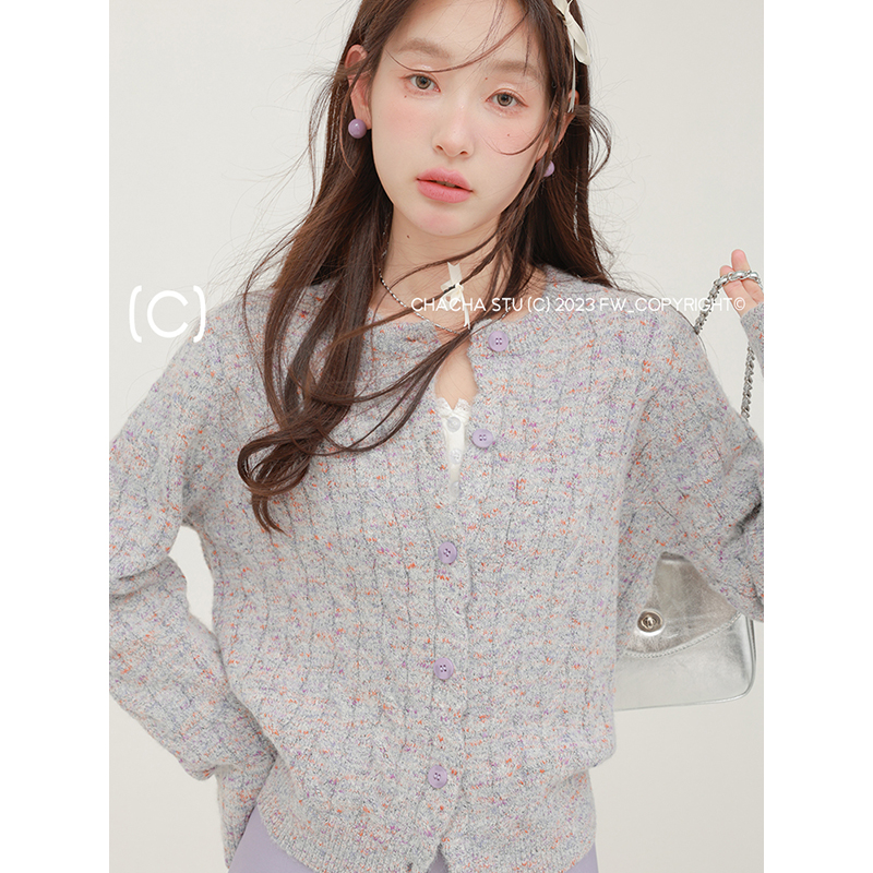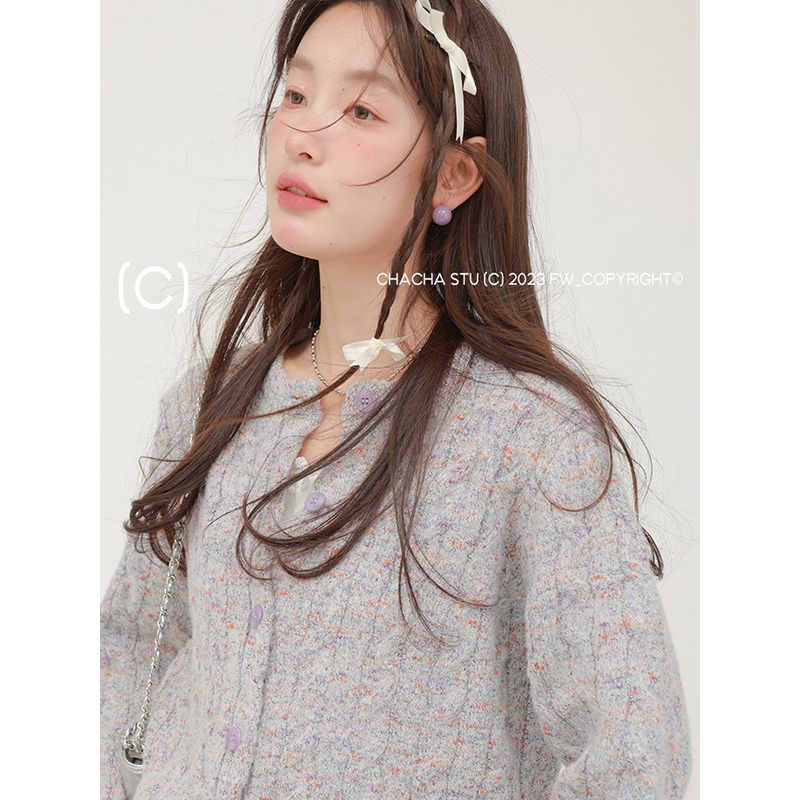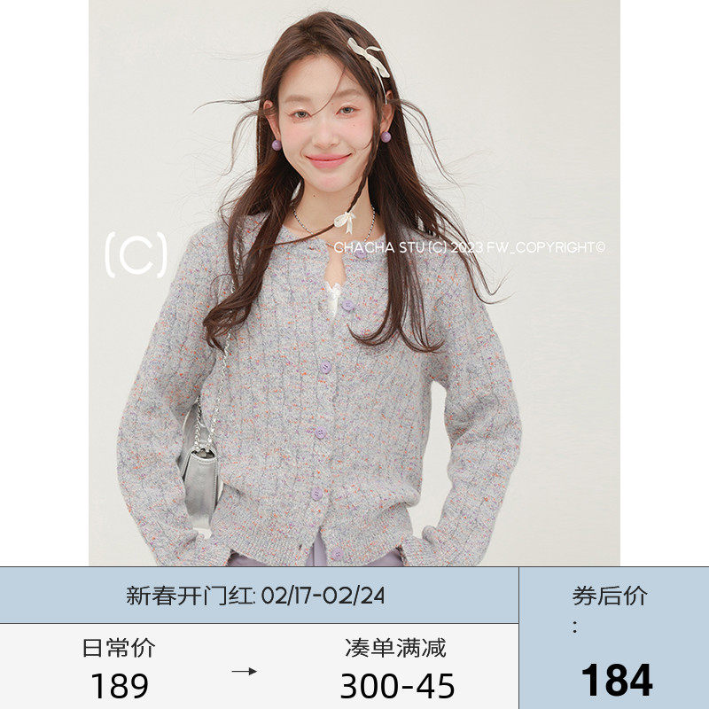 淘宝CHACHASTU,CHACHASTU 混色设计感复古麻花针织衫女春秋款毛衣开衫外套慵懒风