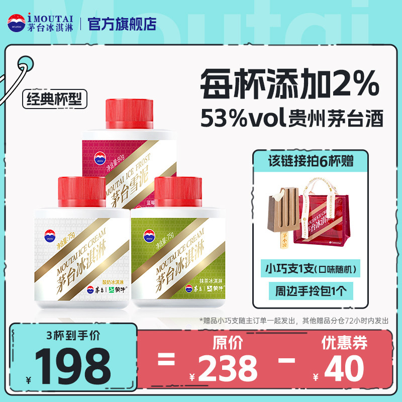 天猫茅台冰淇淋旗舰店,茅台冰淇淋经典酒味酸奶抹茶蓝莓果汁雪泥新口味网红雪糕3杯装