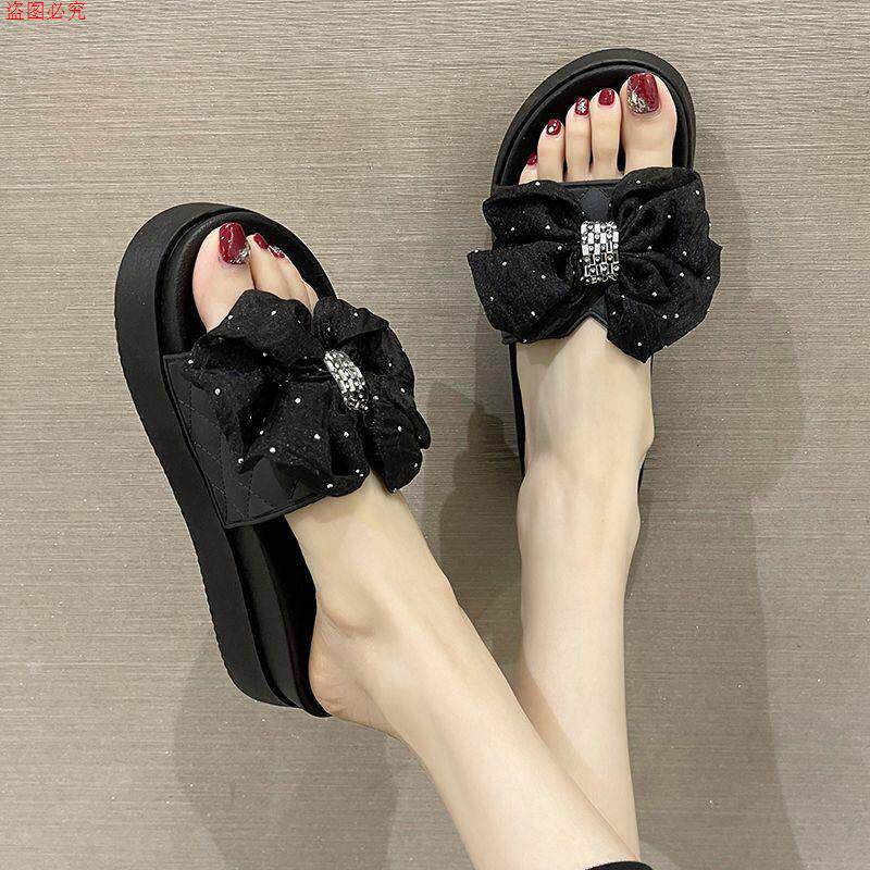 高级感蝴蝶结凉拖鞋女外穿夏季网红时尚百搭厚底增高防滑沙滩鞋
