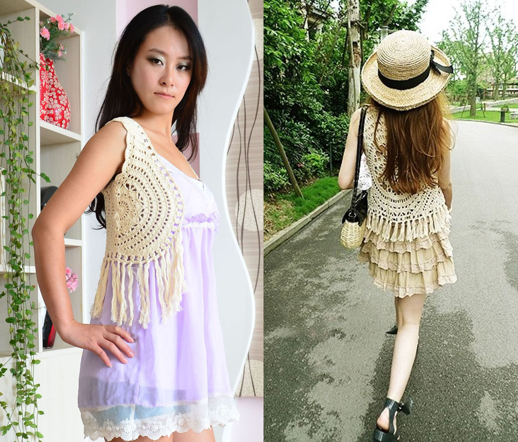 淘宝佳琪尔手工女装定制店,VIVI荐潮人纯手工勾花修身流苏马甲小外套针织衫坎肩036847(现货