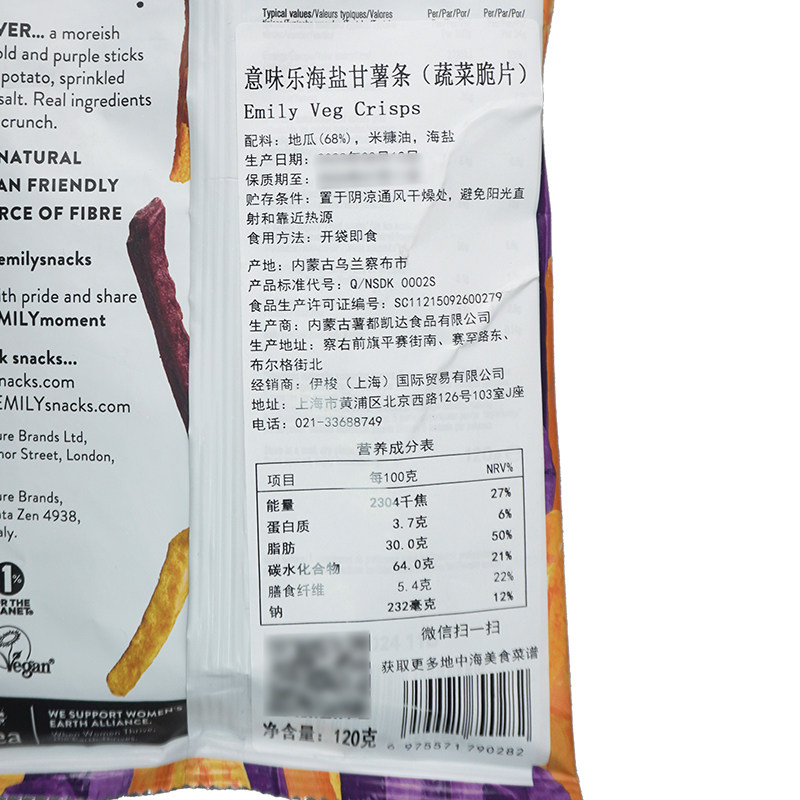 意味乐Emily蔬菜脆片+海盐甘薯条礼包…