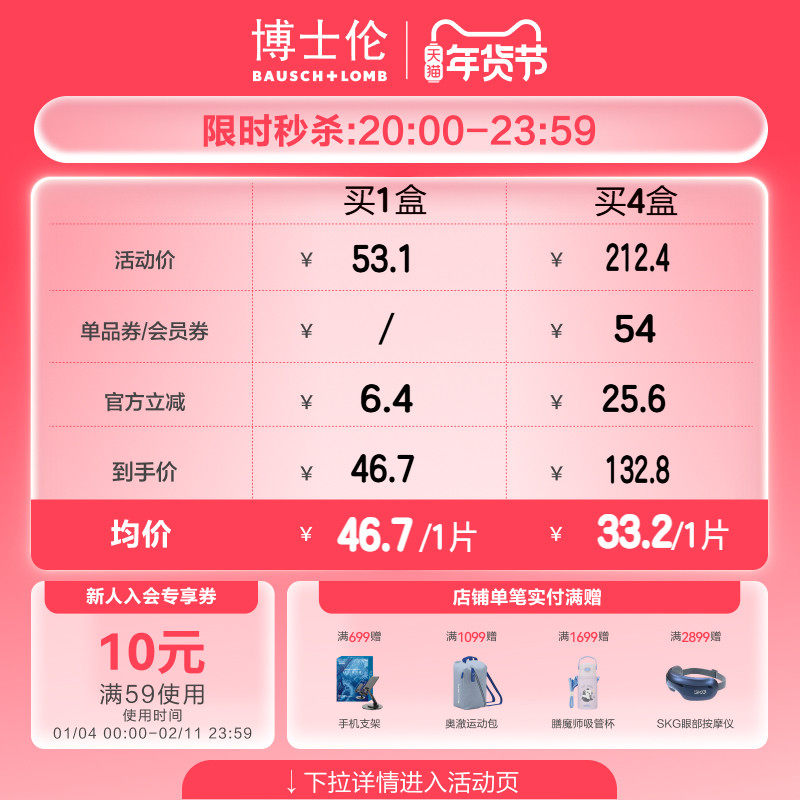 [花色上新]博士伦美瞳日抛10片近视隐形眼镜蕾丝悦目节日限定正品券后价¥69.4博士伦官方旗舰店 52 分前