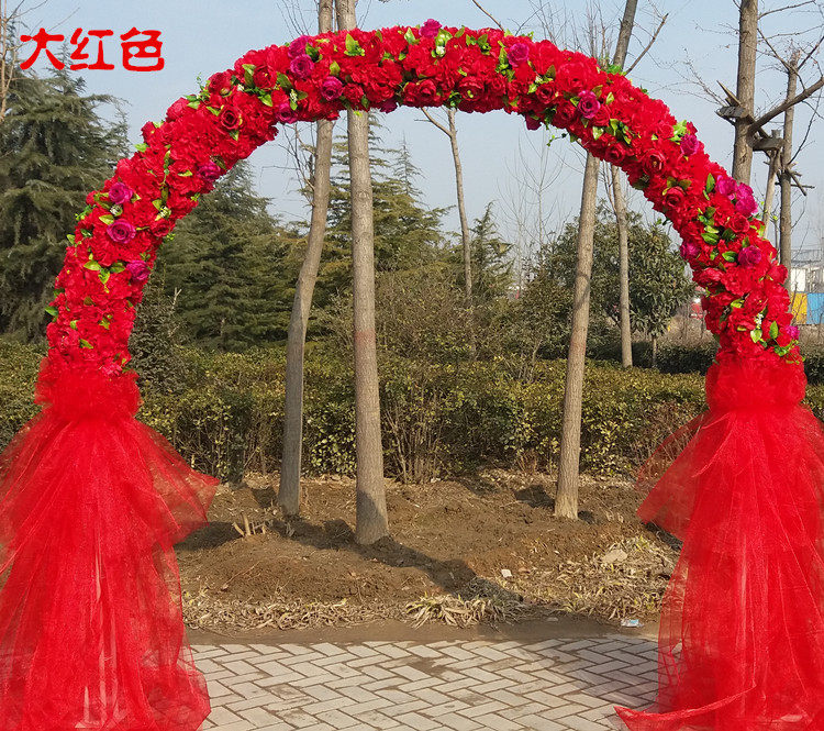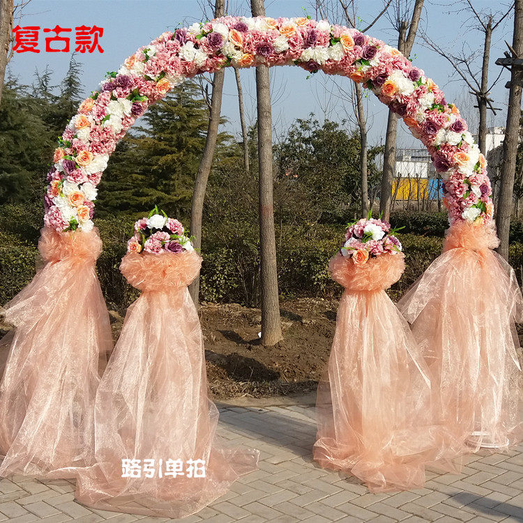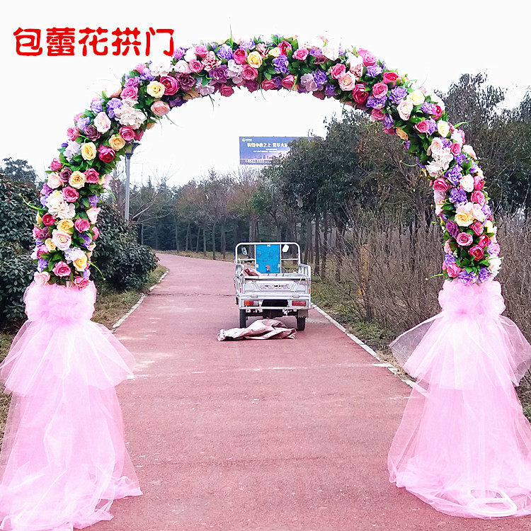 定制婚庆拱门彩虹门花架绢花拱门排花雪纱拱门花柱路引婚庆道具