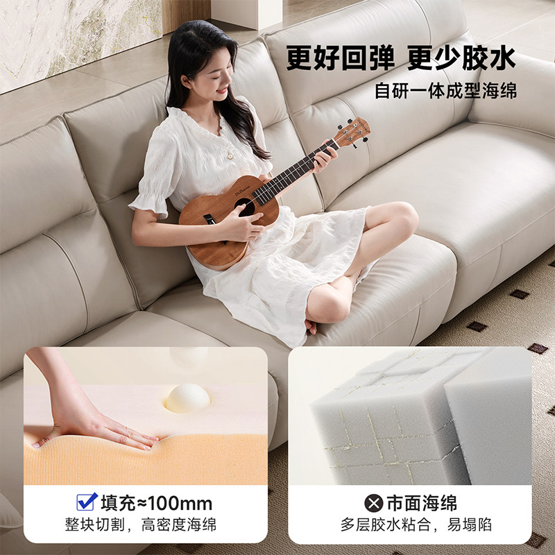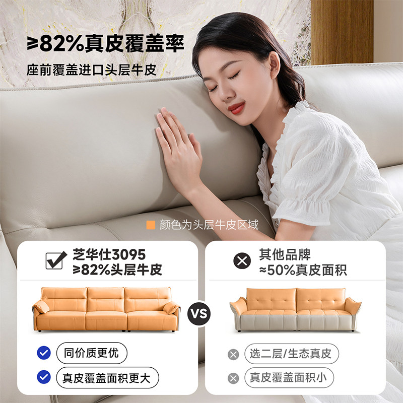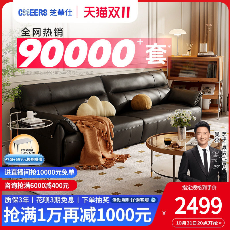 天猫芝华仕官方旗舰店,芝华仕现代轻奢真皮钢琴键沙发,现代轻奢风格,大象耳朵造型,翻折扶手