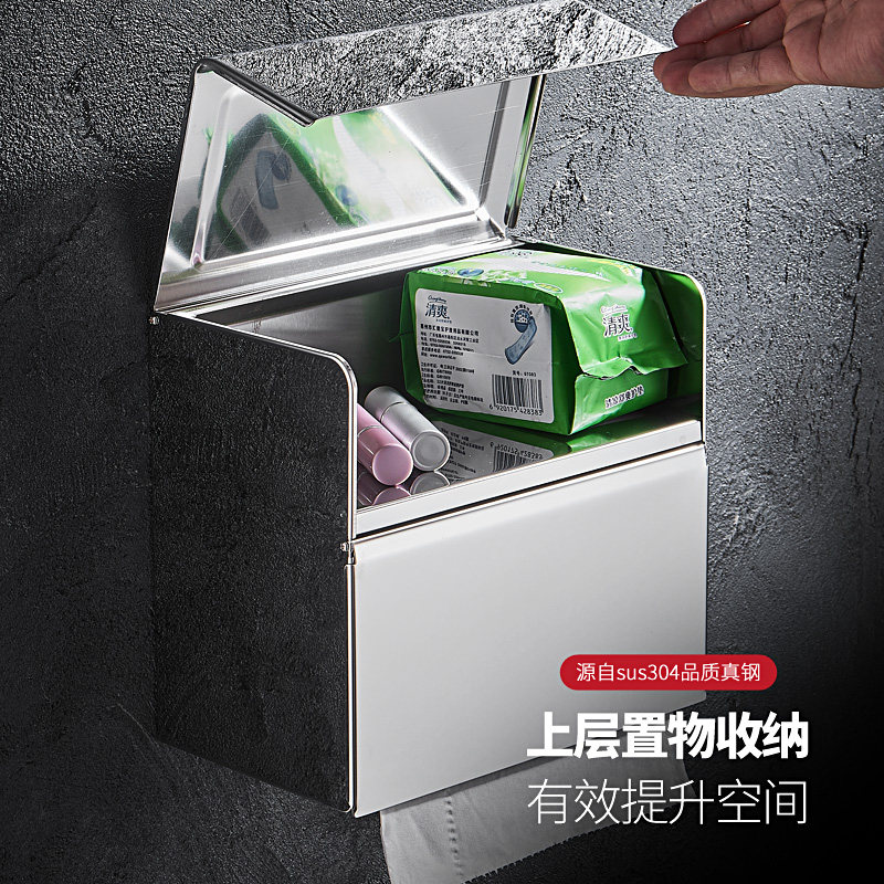 天猫慕尼旗舰店,卫生间厕所挂壁式不锈钢擦手纸盒,上层有效收纳 下层卷纸抽纸均可用