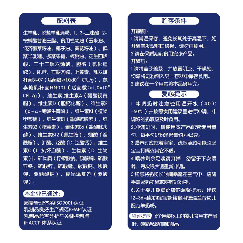 婴幼儿羊奶粉