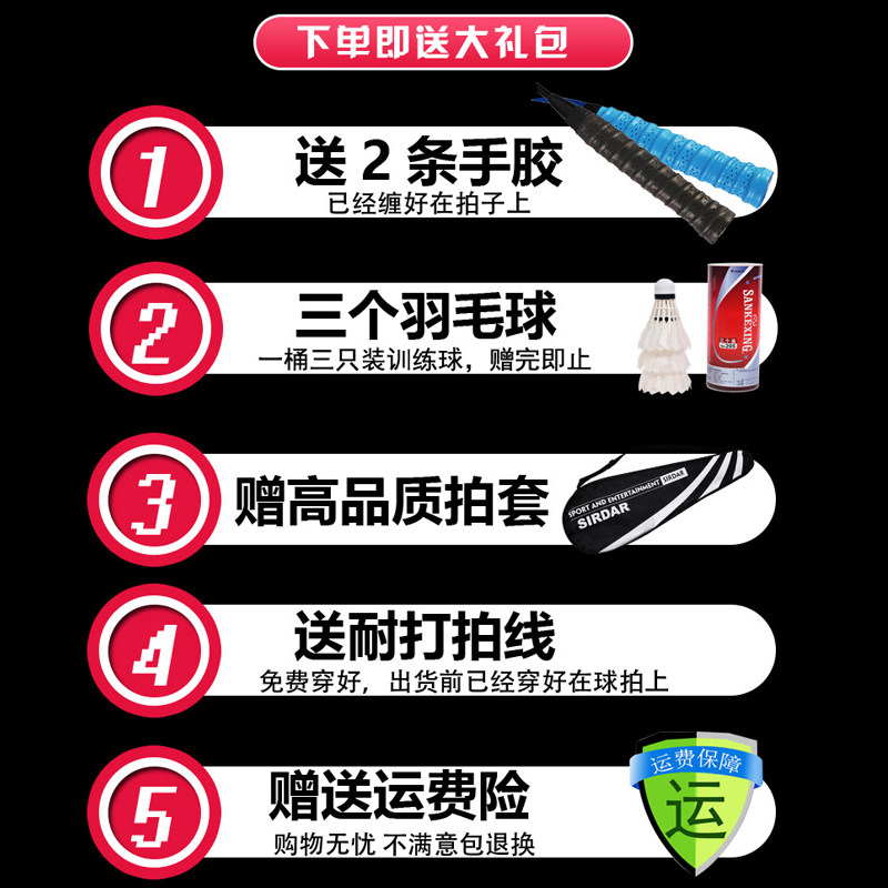 天猫sirdar萨达旗舰店,羽毛球拍双单拍2支全套装正品,2支装 送全套礼品 100天质保 免费换新