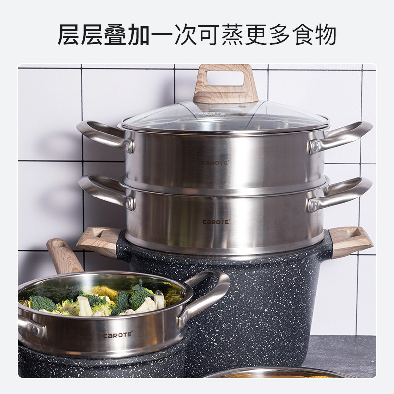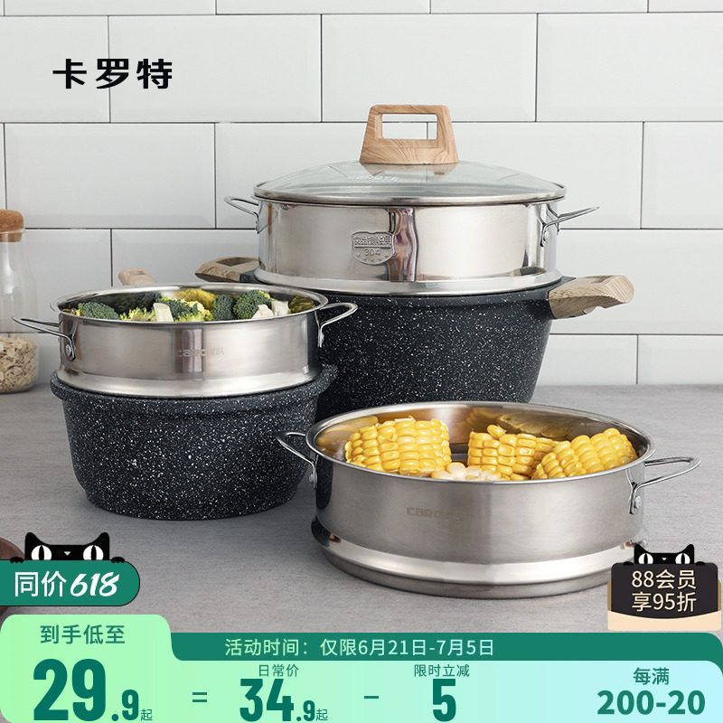 天猫carote卡罗特官方旗舰店,卡罗特304不锈钢蒸笼家用蒸屉架,旗舰正品 304不锈钢 锅具适配 可叠加使用