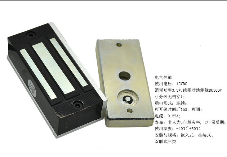 淘宝恒安门禁厂家直销,60公斤磁力锁12v小电子锁60kg门磁,60KG磁力锁 外型尺寸:长80mm*宽35mm*高24mm 适用范围:抽屉、鞋柜