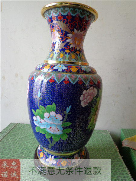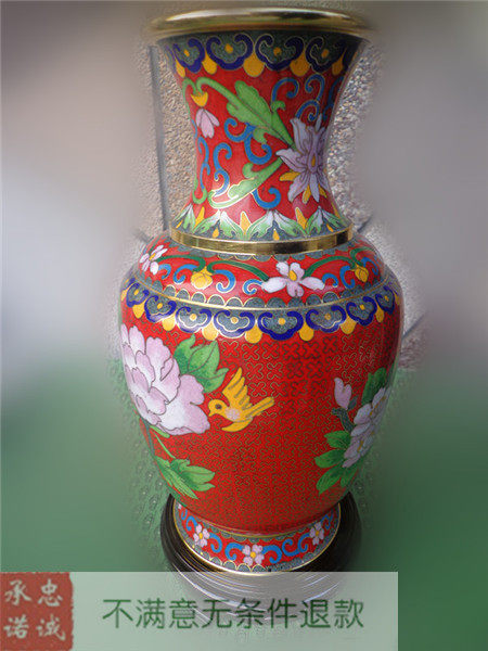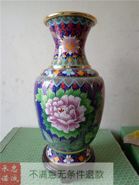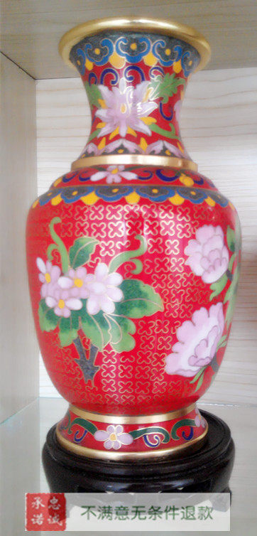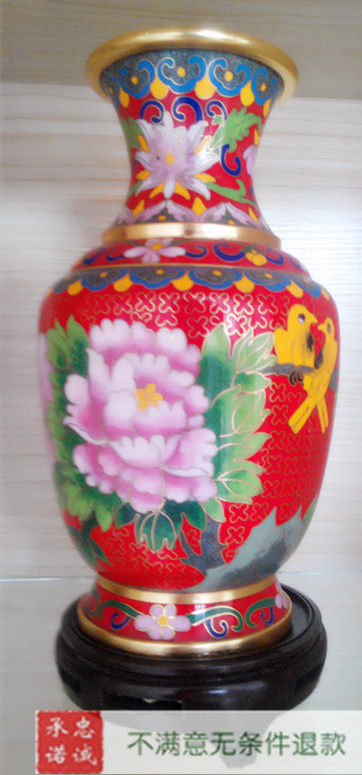 淘宝保定忠诚特产商城,送礼北京景泰蓝富贵牡丹10寸瓶花瓶