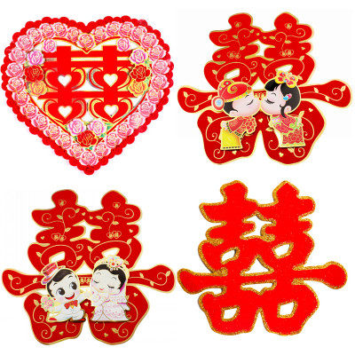婚庆用品结婚大红喜字婚礼婚房布置装饰创意大门立休喜字贴纸