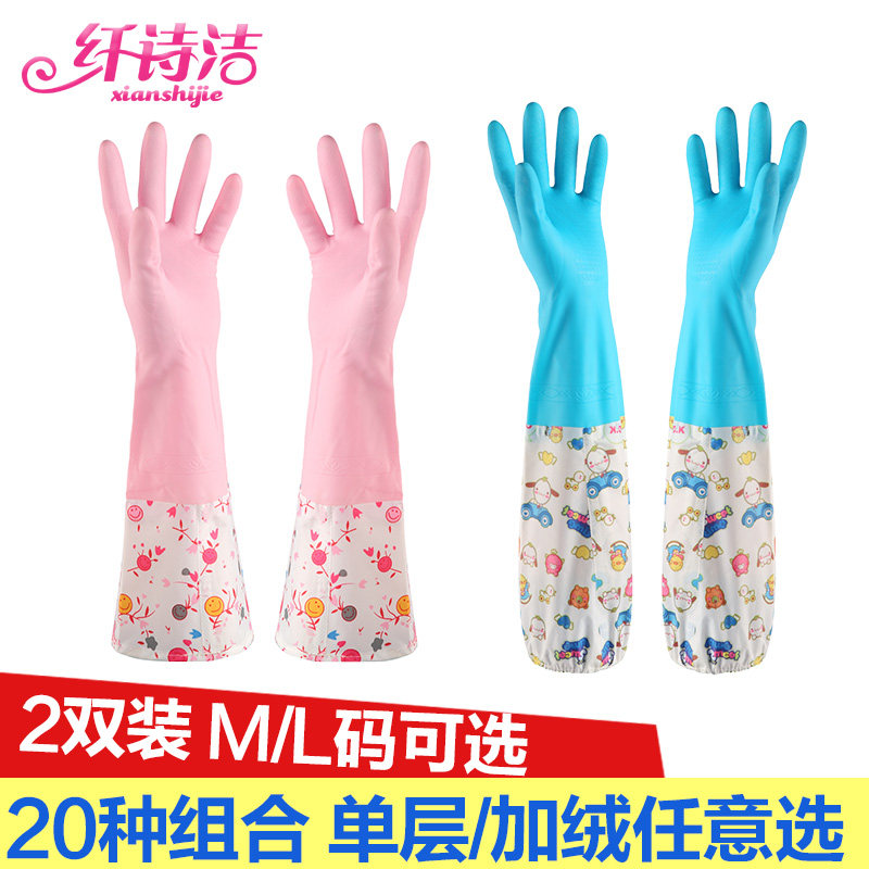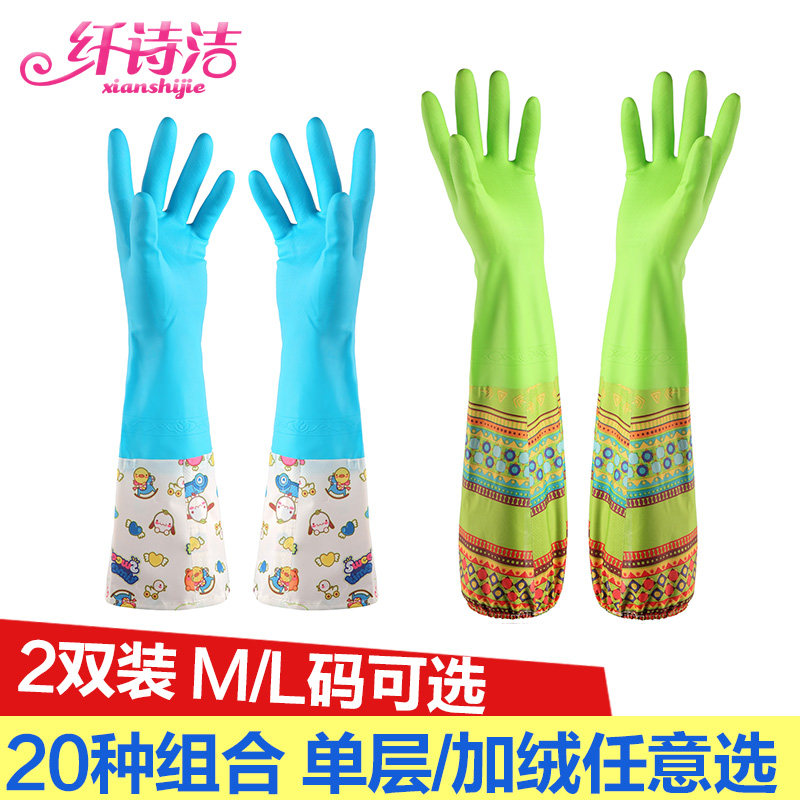 天猫纤诗洁旗舰店,2双装厨房薄款洗碗加绒橡胶手套,防水手套 24个组合套装 5款颜色