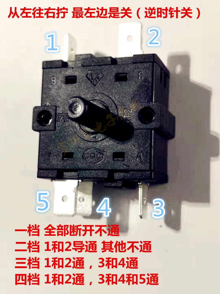 电烤箱配件功能选择器 电取暖器电油丁 调档开关5插头三档位开关