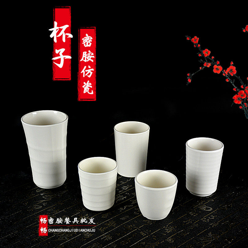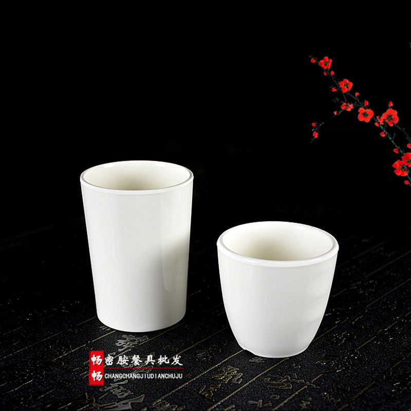 高档A5杯子密胺水杯餐厅仿瓷餐具白色口杯茶杯酒店酒杯饭店塑料杯