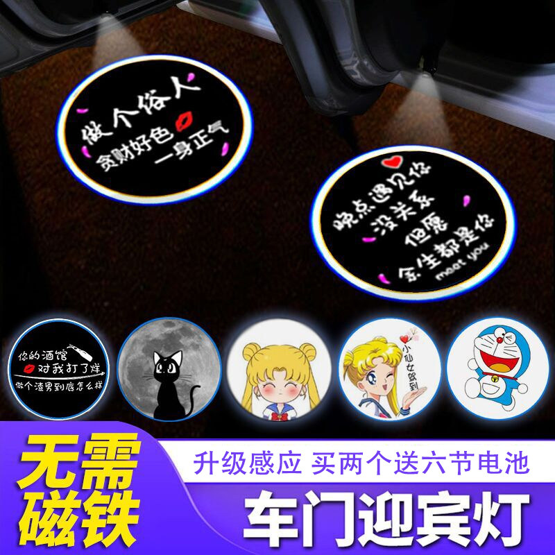 天猫骏途车品专营店,高清车门投影无线照地灯装饰迎宾灯,第三代无线新款 碳纤维纹外壳 双重智能感应