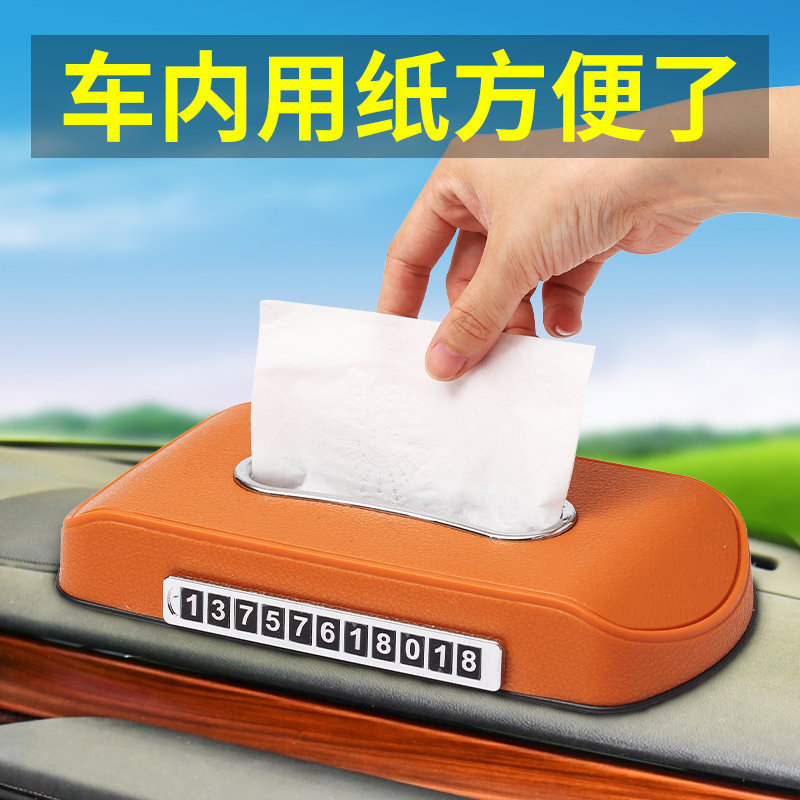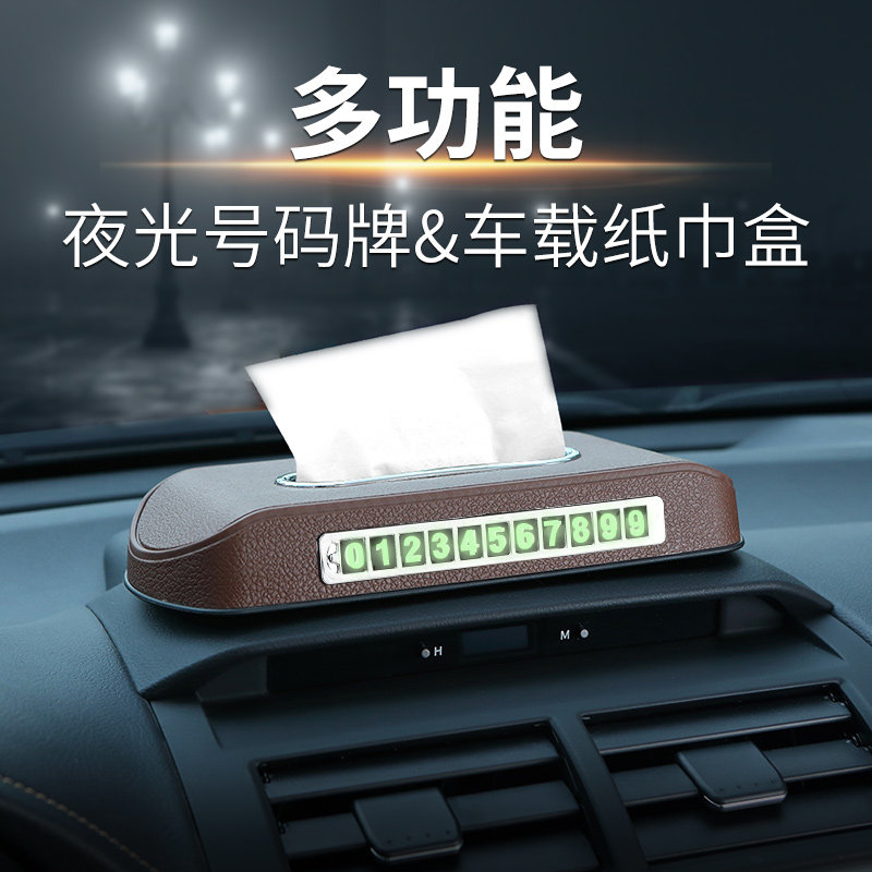 天猫车太太汽车用品旗舰店,车载抽纸盒汽车用创意停车牌车内,夜光停车电话号码牌 荔枝纹皮革感 镀铬装饰