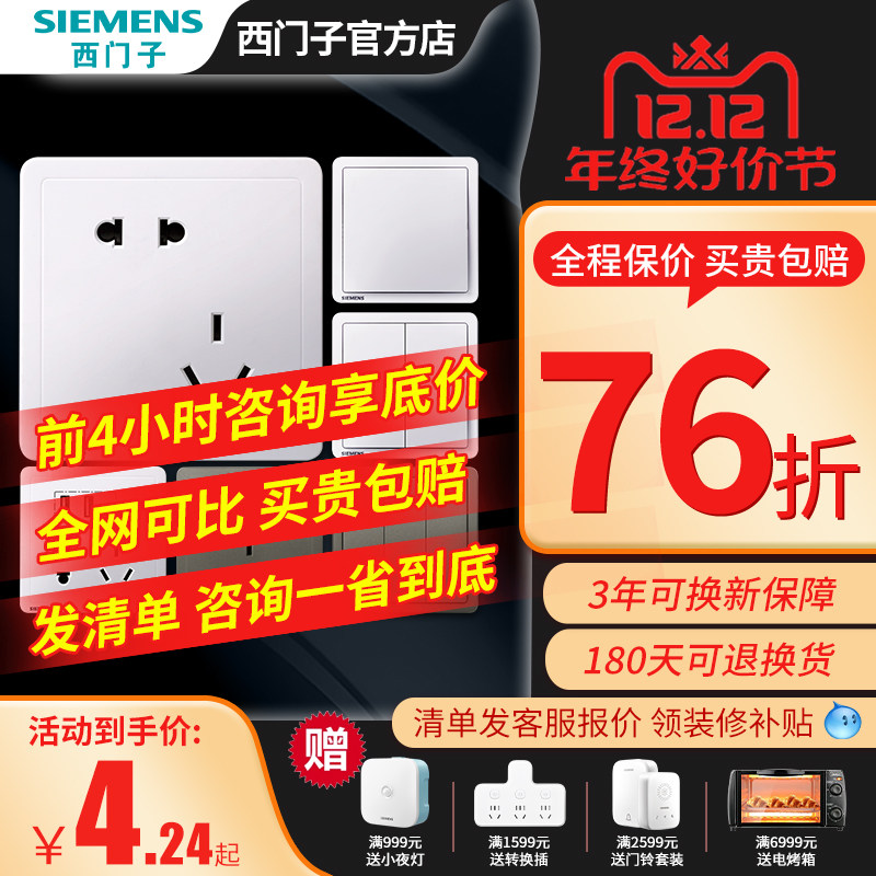 天猫西门子创科专卖店,西门子开关插座致典烟灰色五孔面板,10年品牌官方店 累计服务百万家庭 剩余可退