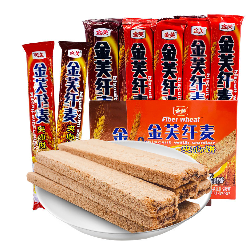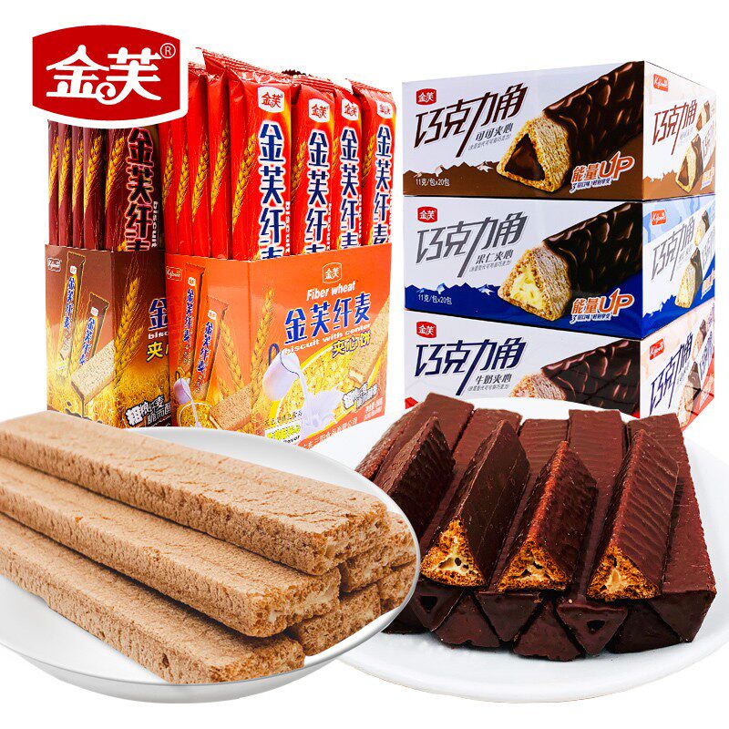 金芙纤麦巧克力威化饼干长条夹心棒盒装儿童小零食品网红休闲小吃