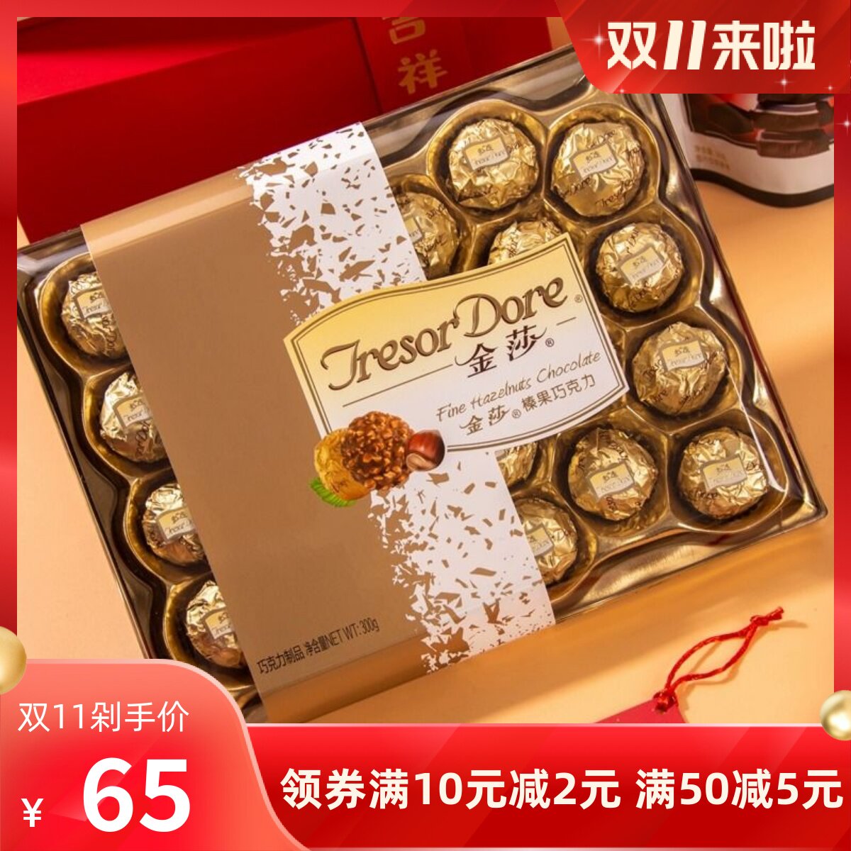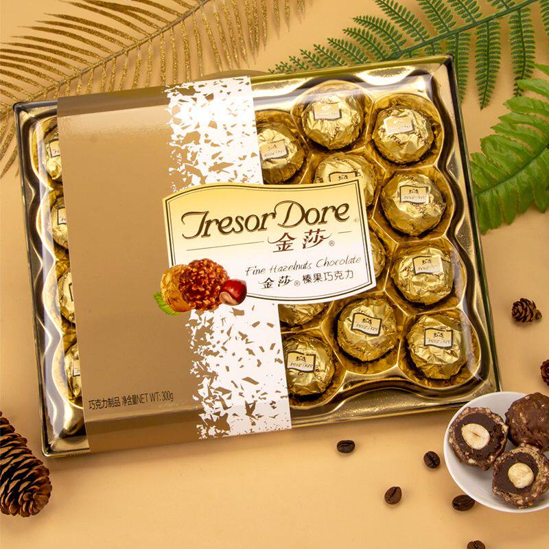 梁丰金莎榛果巧克力可可脂情人节休闲零食品结婚庆糖果300g礼盒装