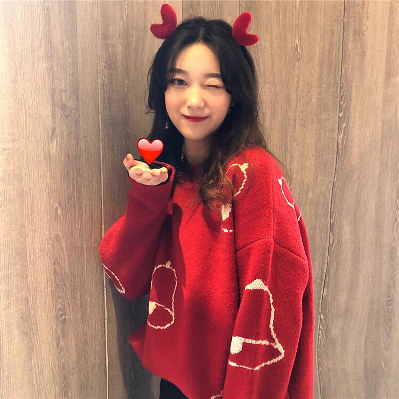 秋冬女装韩版批新款发宽松圆领慵懒风学生毛衣圣诞洋气套头针织衫