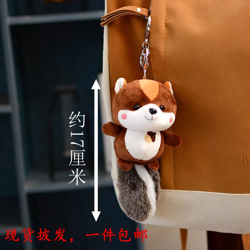 新年可爱坚果尾巴呲牙松鼠毛绒玩具挂件小公仔汽车钥匙扣书包挂饰