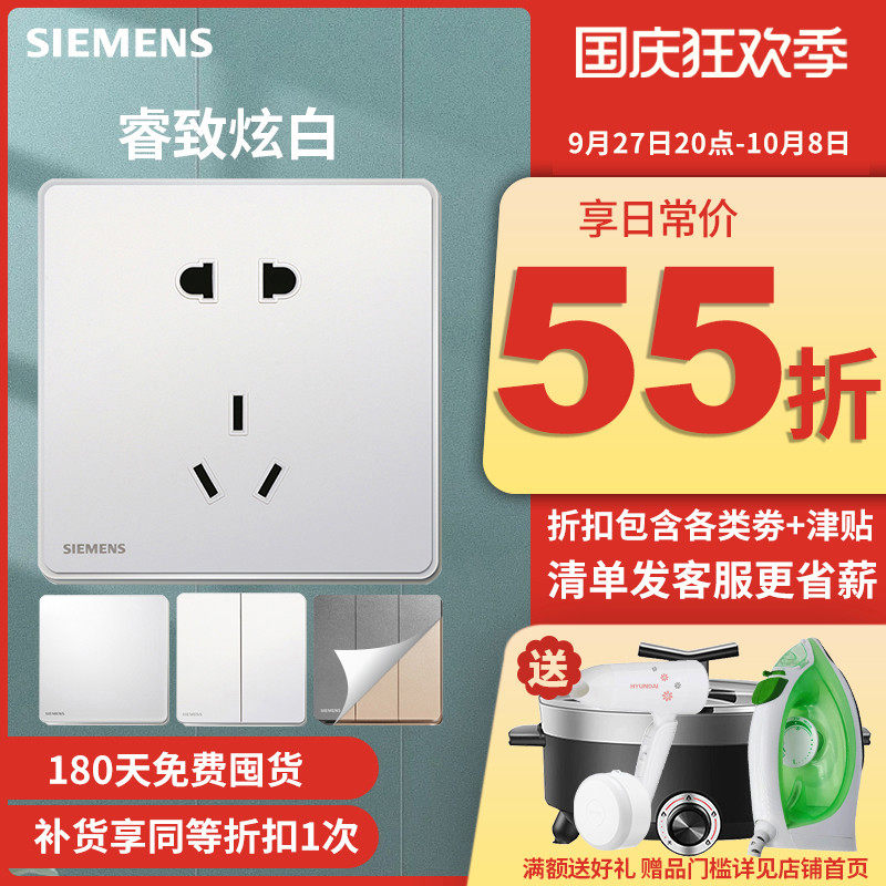 淘宝西门子开关插座官方店,西门子开关睿致炫白色家用86型插座