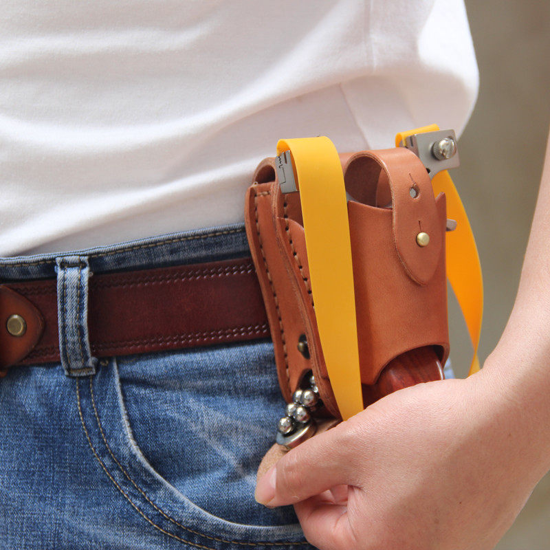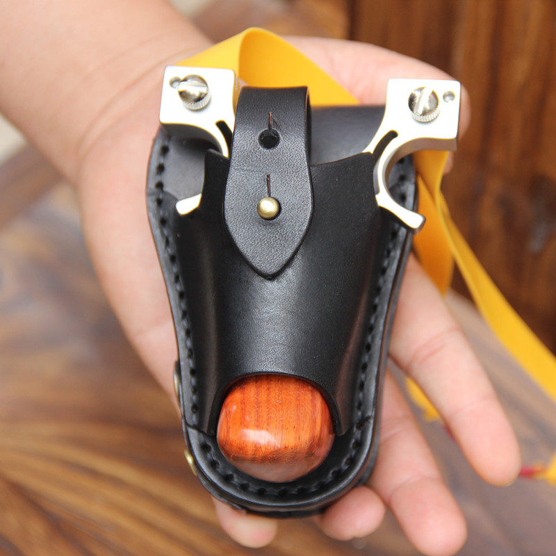 小河家真皮手工弹弓包钢珠包一体包强磁侧开口出弹钢珠包腰包款