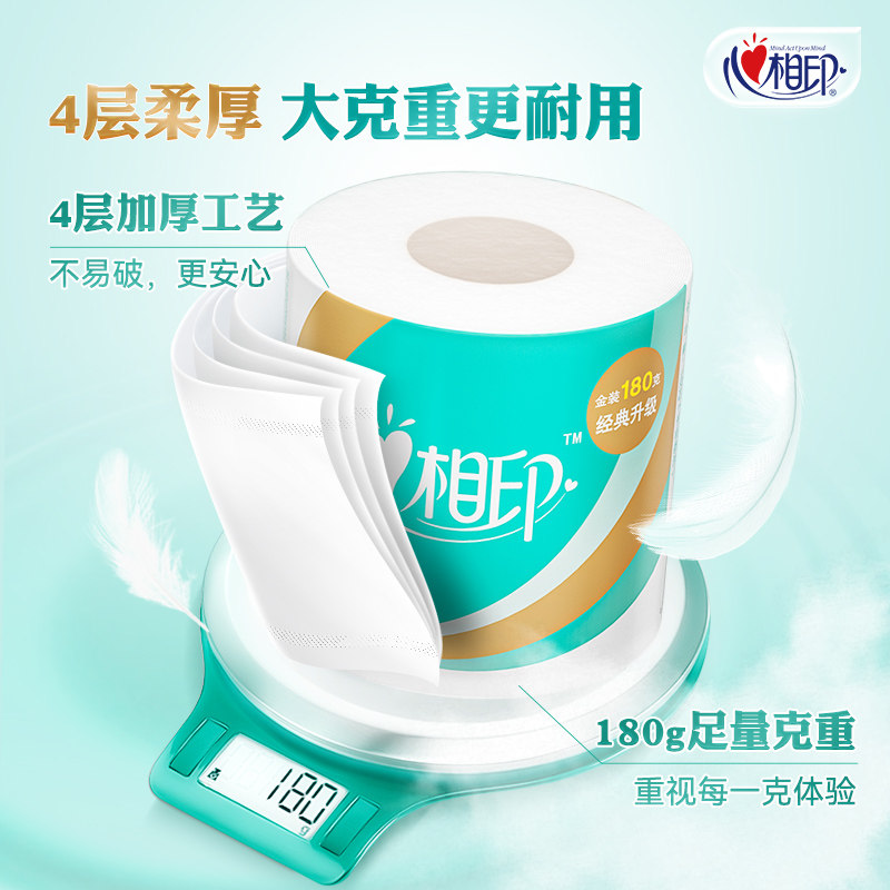 天猫心相印家居专营店,心心相印官方旗舰有芯180g卫生纸巾,四层柔厚 180克大卷耐用