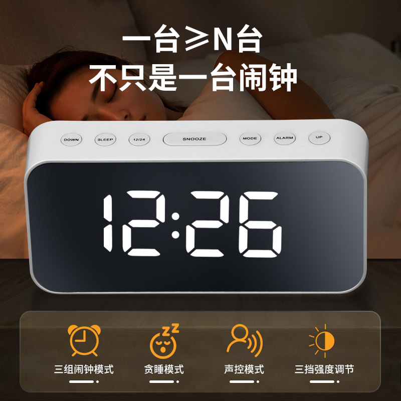 简约现代儿童学生闹钟智能声控电池