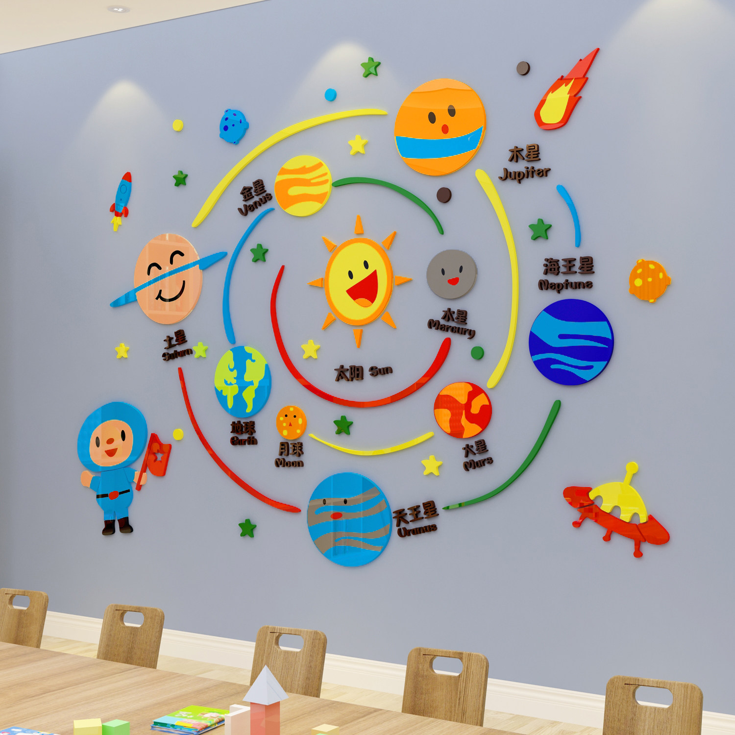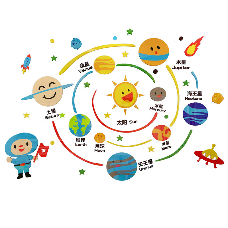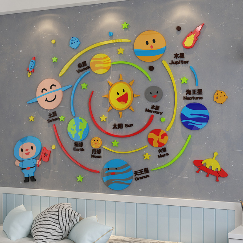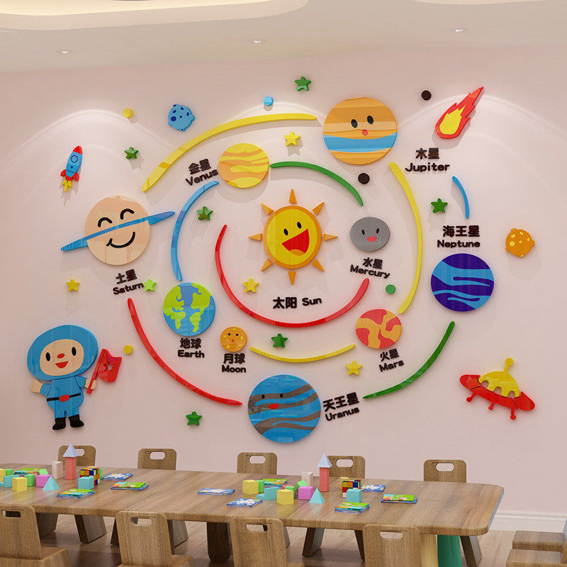 幼儿园墙面贴儿童房装饰文化英语教室环境创布置成品星球太空主题