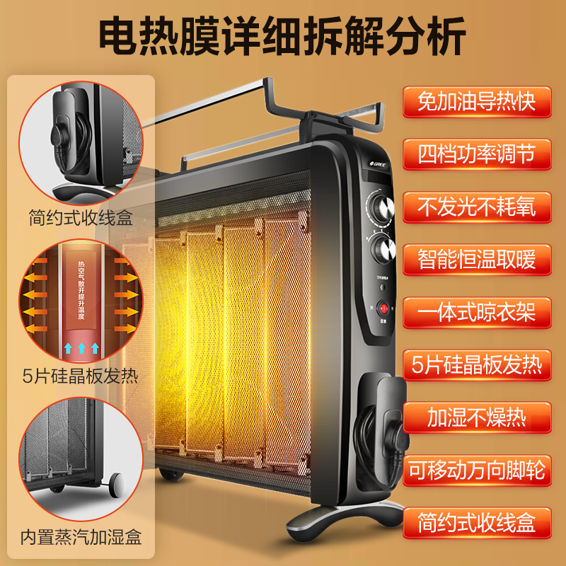 格力取暖器家用暖风机电暖器节能省电硅晶电热膜取暖气宝宝干衣机
