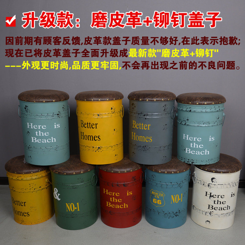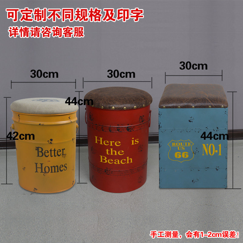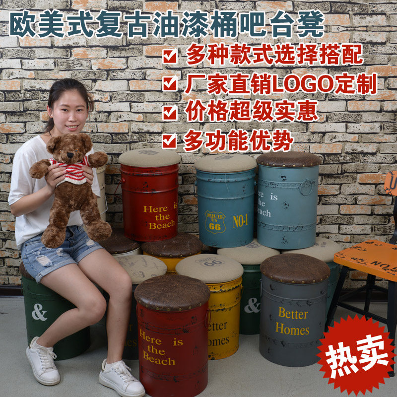 淘宝龙轩铁木订做,美式复古酒吧椅油桶油漆桶方形凳