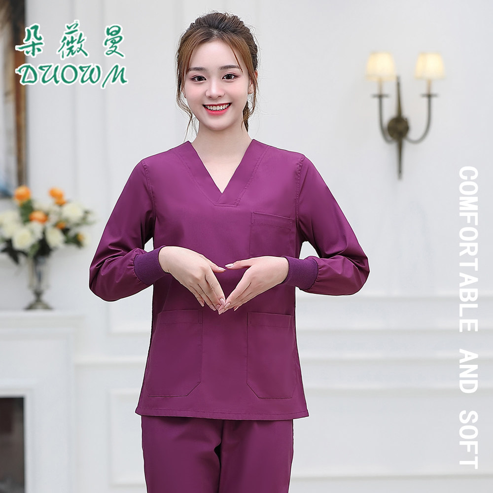 朵薇曼护士分体服套装长袖白色蓝色粉色 口腔服美容服药店服 包邮