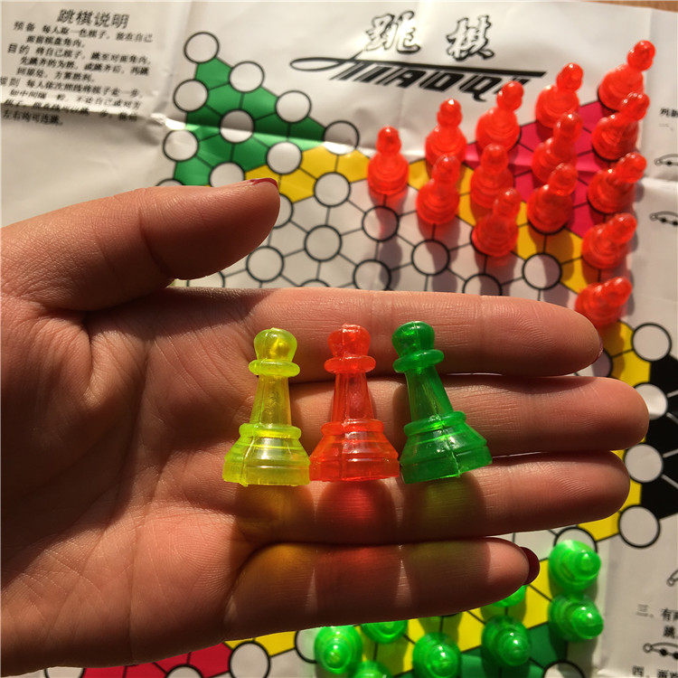 淘宝棋弈轩,包邮水晶学生塑料三色45粒儿童跳棋