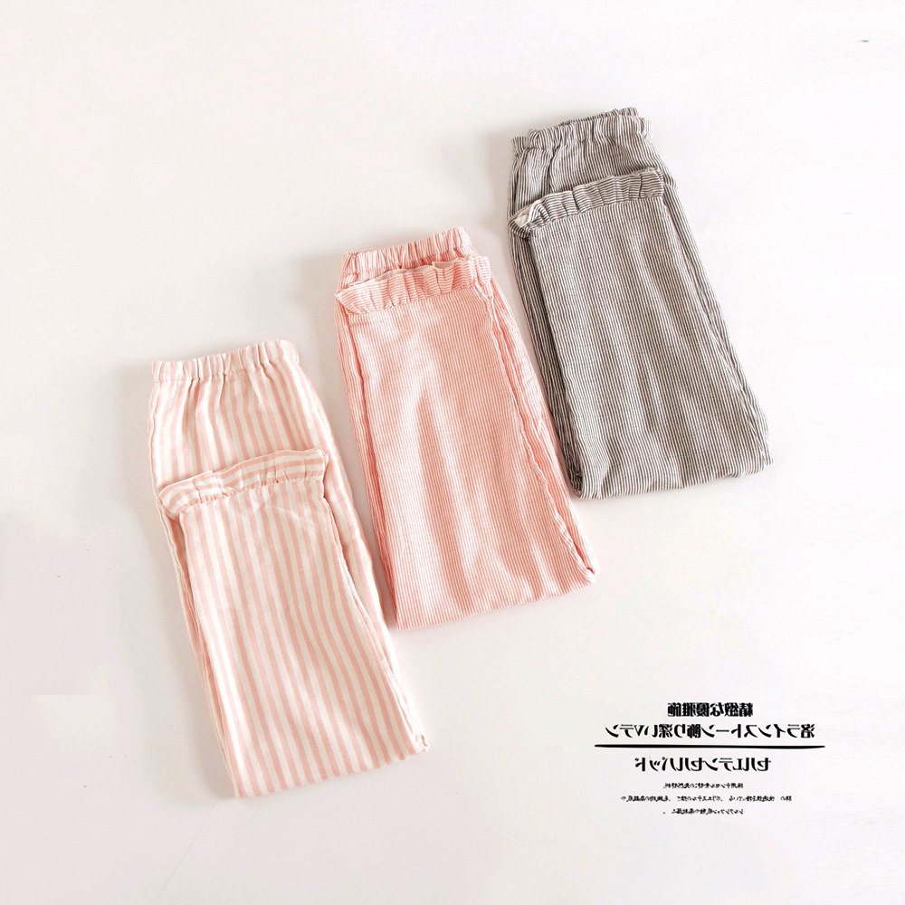 日系全棉纱布加厚孕妇条纹睡裤裤