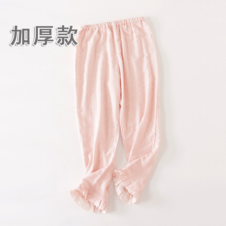日系 全棉纱布加厚秋冬孕妇家居裤条纹孕妇睡裤 纯棉月子裤孕妇裤