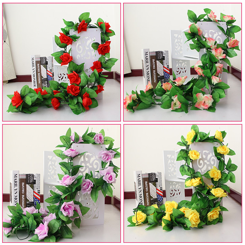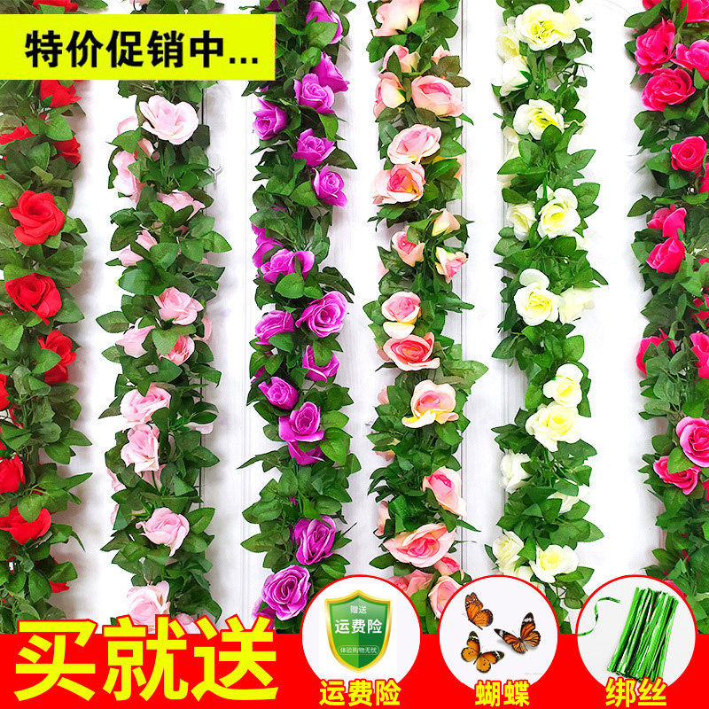 仿真玫瑰花藤假花藤条客厅空调管道室内暖气装饰遮挡塑料藤蔓植物