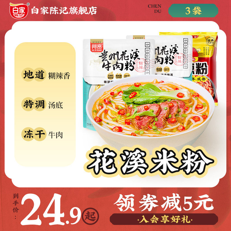 天猫白家陈记旗舰店,阿宽贵州特产花溪牛肉米粉懒人泡面,贵州特色美食 髓牛骨熬成鲜浓原汤 爽口麻香