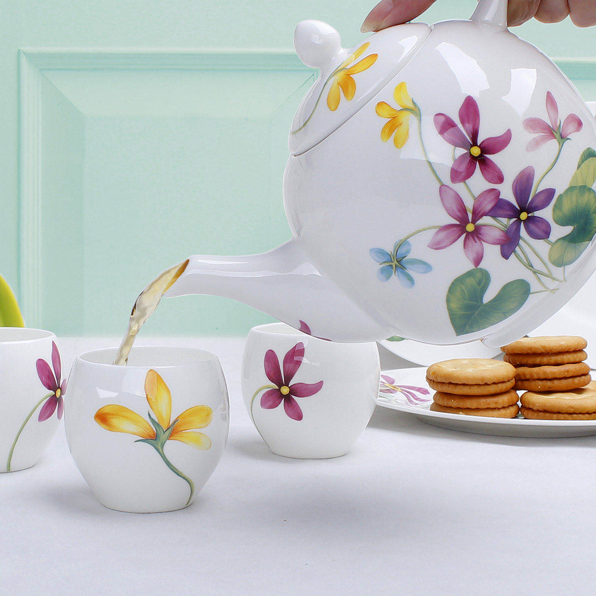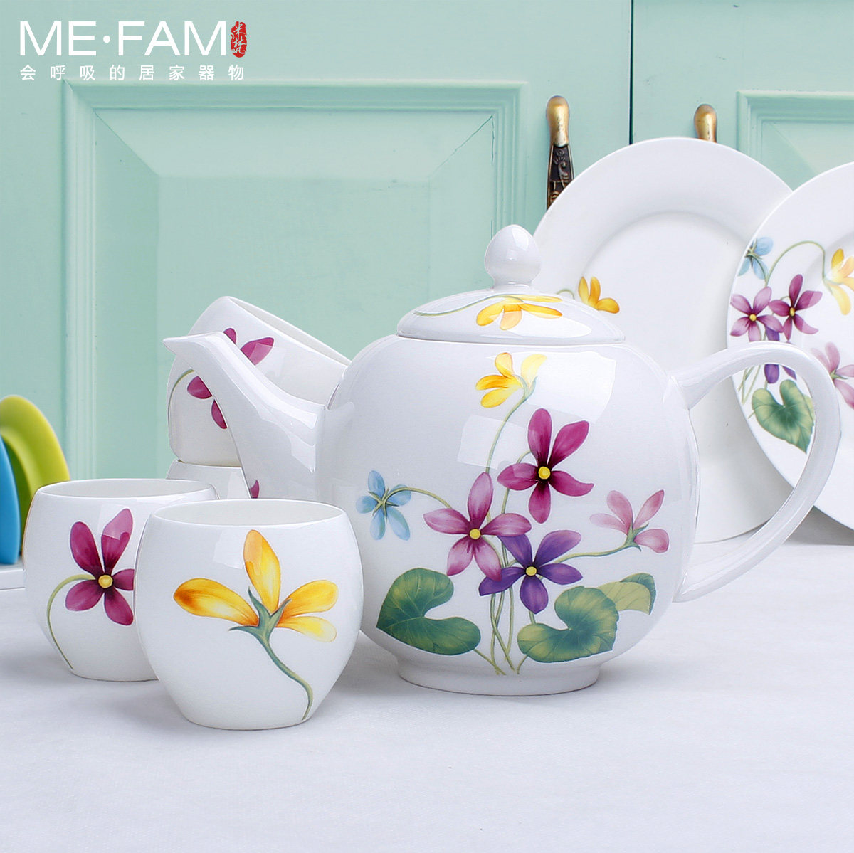 天猫米梵家居旗舰店,米梵家用骨瓷礼盒喝茶杯套装冷水壶,一壶四杯 950ml 大容量 优质骨瓷